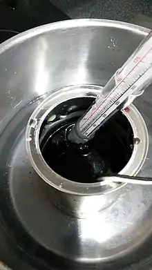 Generally, the potting medium is a wax mixture that is melted[3](see photo) and then permeates the wire coils.[4] Other substances such as nitrocellulose lacquer or epoxy resins can also be used.[5]