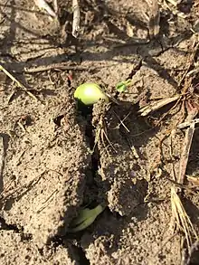 Missouri gumbo soil with soybean seedlings