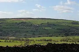 The hill has height 385 metres (1,263 ft), and there is a trig point at the summit. Having a prominence of 168 metres (551 ft), it is a Marilyn.[1]