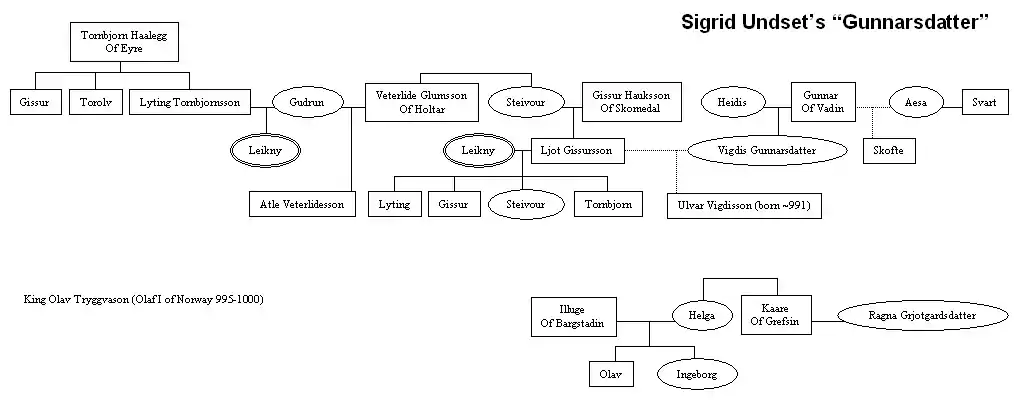 The novel follows the tragic romance between the proud Vigdis Gunnarsdatter and the Icelandic Viga-Ljot. The major themes are rape, revenge, social codes, marriage, and children bearing the consequences of their parents' actions. The story is written using the motifs and laconic prose of the Icelandic sagas.[1]