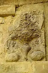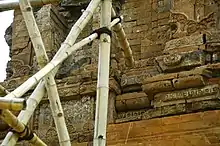 The temple is quite richly adorned with niches, seams and decorated antefixes. Intricate panels, featuring ornaments in the form of bas-reliefs, vessels with floral motifs, pilasters, images of trees and animals, which are made with clay molding techniques. There are traces of plasters known as vajralepa, which suggest originally the entire surface of the temple was covered with plaster, which is similar to the Kalasan and Sari temple near Prambanan.[4]