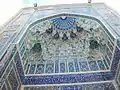 The entrance portal to the Muhammad Sultan ensemble is richly decorated with carved bricks and various mosaics. All the extensions of Ulugh Beg's time are attributed to the architect Muhammad ibn Mahmud from Isfahan.