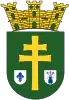 In a green field resides a widened gold patriarchal cross. Below the bottom arm are two shields in silver. The one on the left has a fleur de lis and the one on the right three lilies with stems in a natural way. Three towers in gold crown the shield.[22][35]