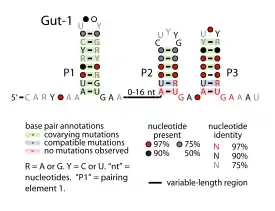 ![]() Consensus secondary structure of Gut-1 RNAs | |
