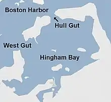 A gut is a narrow coastal body of water, a channel or strait, usually one that is subject to strong tidal currents flowing back and forth.[1][2][3] A gut may also be a small creek.