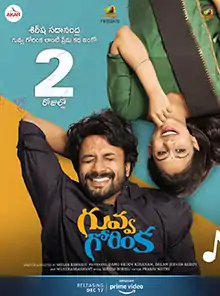 Guvva Gorinka (transl. Dove and myna) is a 2020 Indian Telugu-language romantic drama film written and directed by Mohan Bammidi. The film stars Satyadev Kancharana and Priyaa Lal, with Priyadarshi Pulikonda, Chaitanya Rao Madadi, Madhumita and Rahul Ramakrishna playing other roles.[1][2] The film is produced by B. Jeevan Reddy and Damu Reddy Kosanam. The music is composed by Bobbili Suresh.[3] The film premiered on 17 December 2020 on Amazon Prime Video.[4][5] The Malayalam version is called Prema Kiligal, the Kannada version is called Gubbacchi Goravanka, the Tamil version is called kaadhal paravaigal.