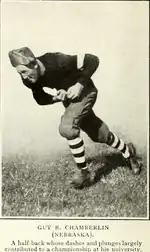 In the fall of 1913, Chamberlin transferred to the University of Nebraska in Lincoln. There he became a member of Beta Theta Pi fraternity.[3] He played halfback for Jumbo Stiehm's undefeated 1914 Nebraska Cornhuskers football team that won the Missouri Valley Conference championship and became known as the "Stiehm Rollers". At the end of the 1914 season, Chamberlin was named to Outing magazine's "Football Roll of Honor: The Men Whom the Best Coaches of the Country Have Named as the Stars of the Gridiron in 1914".[4]