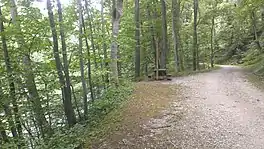 ![]() Westbound, approaching the Windsor Mill Road trailhead | |