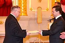 György Gilyán is a Hungarian diplomat and the Ambassador Extraordinary and Plenipotentiary of Hungary to the Russian Federation.[1] He previously served as Hungary's State Secretary. During his time in that office, Hungary opened an embassy to Belarus.[2]