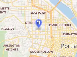 Gypsy Restaurant and Lounge was established in 1947 and was originally located at 612 Northwest 21st Avenue.[2][6] In 1948, The Oregonian published an advertisement for business, promoting an eight-course dinner for $1.25, between the hours of 4 pm and 3 am. The restaurant's location was described as "next to 21st Avenue Theater", between Northwest Hoyt and Irving Streets.[7] In 1955, the paper reported that $1,000 was stolen from an unlocked safe stored at the Gypsy Restaurant.[6] In 1963, the restaurant and lounge moved to its final location, at the intersection of Northwest 21st Avenue and Hoyt Street, across from Cinema 21.[4][5][8] On opening night, the "New Gypsy" restaurant reportedly played songs by Frank Fontaine.[4]