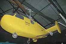 In 1946 the newly formed Gyrodyne Company acquired rights to the Bendix Model J and developed it into the GCA-2 (N74101). The GCA-2 was of all-metal construction, and had a coaxial twin rotor layout, with a five-seat cabin and a rounded fuselage with twin fins. Later on, the GCA-2 was designated GCA-2A Helidyne after being modified with twin 100hp Continental auxiliary engines mounted externally on strutted outriggers to give additional forward speed, flying on November 30, 1949. A second GCA-2 airframe, the GCA-2C (civil registration N6594K), first flew on April 25, 1952 piloted by Jim Ryan; it could also be used as an ambulance helicopter capable of carrying three litters.[1][2][3]