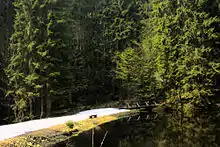 The Höllbachgspreng is a wooded rock massif below the Großer Falkenstein mountain in the vicinity of Lindberg in the Bavarian Forest, Germany.