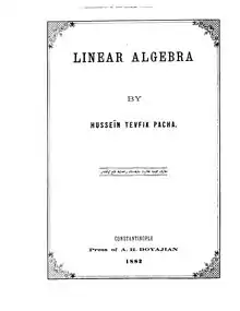 - Huseyin Tevfik Pasha (1882) Linear Algebra from Internet Archive