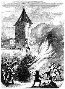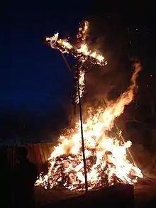 Hüttenbrennen (lit. "hut burning"), sometimes also referred to as Burgbrennen (lit. "castle burning"), is an old-fashioned bonfire custom in many part of the Eifel mountains in Germany. It is celebrated every year on "Straw Sunday" (German: Schafssonntag, Moselle Franconian: Schoof-, Schoofs-, Schöf-, Schoaf-, Schaufs-, Scheifsunndich or Scheefsunndich, where Scheef= "truss of straw"), the first Sunday after Shrove Tuesday (Carnival Day or Fastnacht), also observed as Funkensonntag.[1][2]