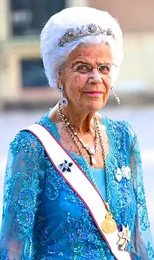 ![]() Countess Alice Trolle-Wachtmeister wearing H. M. The King's Medal 12th size on gold chain | |