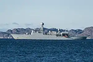 ![]() HDMS Hvidbjørnen (F360) sailing off Nuuk, Greenland | |
