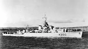 The River-class frigate was designed by William Reed of Smith's Dock Company of South Bank-on-Tees. Originally called a "twin-screw corvette", its purpose was to improve on the convoy escort classes in service with the Royal Navy at the time, including the Flower-class corvette. The first orders were placed by the Royal Navy in 1940 and the vessels were named for rivers in the United Kingdom, giving name to the class. In Canada they were named after towns and cities though they kept the same designation.[6] The name "frigate" was suggested by Vice-Admiral Percy Nelles of the Royal Canadian Navy and was adopted later that year.[7]