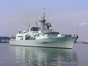 In 2005, the frigate, with the destroyer Athabaskan, frigate Toronto and the Canadian Coast Guard ship Sir William Alexander were sent to Louisiana to aid in recovery efforts following the devastation wrought by Hurricane Katrina.[11] In 2008, the vessel took part in Operation Caribbe, Canada's contribution to an ongoing U.S.-led, multinational effort to interdict drug trafficking in the international waters of the Caribbean Basin and eastern Pacific Ocean. In September 2008, the frigate was sent to Haiti, carrying 350 tonnes of food and relief supplies after the nation had been hit by four hurricanes.[12]