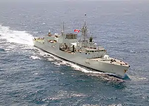 The frigate was deployed as part of Operation Apollo, Canada's contribution to the War in Afghanistan. The ship was in theatre from 15 September 2002 to 2 May 2003 performing fleet support missions and maritime interdiction operations.[9]