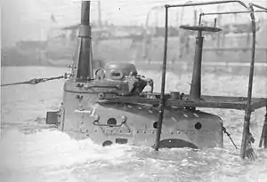 ![]() HMS A10, conning tower awash | |