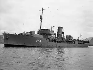 The Flower-class arose as a result of the Royal Navy's realisation in the late 1930s that it had a shortage of escort vessels, particularly coastal escorts for use on the East coast of Britain, as the likelihood of war with Germany increased. To meet this urgent requirement, a design developed based on the whale-catcher Southern Pride - this design was much more capable than Naval trawlers, but cheaper and quicker to build than the Hunt-class destroyers or Kingfisher-class sloops that were alternatives for the coastal escort role.[2][3]