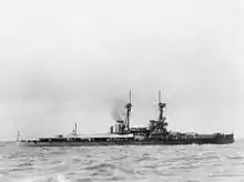 HMS Collingwood was a St Vincent-class dreadnought battleship built for the Royal Navy in the first decade of the 20th century. She spent her whole career assigned to the Home and Grand Fleets and often served as a flagship. Prince Albert (later King George VI) spent several years aboard the ship before and during World War I. At the Battle of Jutland in May 1916, Collingwood was in the middle of the battleline and lightly damaged a German battlecruiser. Other than that battle, and the inconclusive action of 19 August, her service during the war generally consisted of routine patrols and training in the North Sea. The ship was deemed obsolete after the war; she was reduced to reserve and used as a training ship before being sold for scrap in 1922.