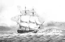 HMS Cumberland was a 74-gun third rate ship of the line of the Royal Navy, launched on 19 August 1807 at Northfleet.[1] During the Napoleonic wars she brought King William I of the Netherlands from London to The Netherlands.
