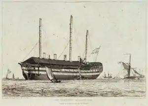 In 1855 she was fitted with screw propulsion.[3] In 1857 the ship was deployed to Liverpool on coastal defence duties before being transferred to the Royal Naval Reserve to be used as a training ship.[5]