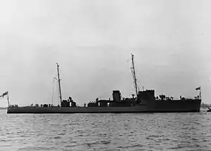 In 1939 Kingfisher, based at Portland Harbour as part of the 1st Anti-Submarine Flotilla,[9][10] was fitted with an experimental depth-finding sonar.[11] On 9 August 1939, the ship took part in a review of the Reserve Fleet at Weymouth by King George VI.[12]