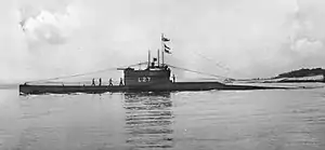 HMS L27 was a L-class submarine built for the Royal Navy during World War I. The boat was not completed before the end of the war and was one of three L-class boats to serve during World War II. She served as training boat before being broken up in 1944.