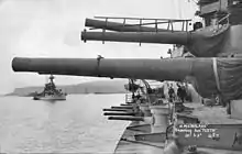 The ship was fitted with flying-off platforms mounted on the roofs of 'B' and 'X' turrets in 1918, from which fighters and reconnaissance aircraft could launch. Exactly when the platforms were removed is unknown, but no later than Malaya's 1934–1936 reconstruction.[7]