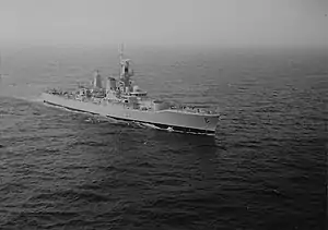 HMS Naiad (F39) was a Leander-class frigate of the Royal Navy (RN). Like the rest of the class, Naiad was named after a figure or figures of mythology, in this case the Naiads of Greek mythology. Naiad was built by Yarrow Shipbuilders of Scotstoun. She was launched on 4 November 1963 and commissioned on 15 March 1965.[1]