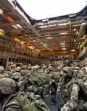 Ocean was designed to provide the amphibious assault capabilities last offered by Albion and Bulwark. She can deploy an Embarked Military Force (EMF) of a Royal Marines Commando Group from 3 Commando Brigade supported by aircraft and landing craft. The ship's company included 9 Assault Squadron (9 ASRM) from 1 Assault Group Royal Marines whose primary role is as an Amphibious Assault Squadron. Secondary tasks include boarding parties, beach reconnaissance and providing amphibious knowledge to the ships Command. Besides these roles they have responsibilities within the ship which include firefighting, watchkeeping and security. 9 ASRM is divided into a HQ unit, Landing Craft Troop, Signals detachment, Vehicle Deck Party and Assault Supply Team.[19]