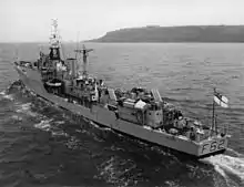 ![]() Port view of Blackwood-class frigate HMS Pellew (F62). 18 December 1962 (IWM HU 129945) | |
