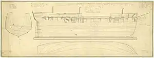 Two vessels were designed to be a 38-gun frigates known as Prompte and Psyche. The frames of the frigates were constructed out of fir, an inferior material which was not suitable for sea-going ships.[4] The vessels were built in Great Britain at Chatham dockyard and dismantled. The pieces were transported across the Atlantic, the first of which landed at Montreal in June 1814. Prévost attempted to ease strain on government supply lines by hiring the private contractor William Forbes to move Frigate B (Psyche) up the Saint Lawrence River to be assembled at Kingston.[5] It was reported that this effort cost the Royal Navy £300,000. The decision by the Admiralty was based upon the belief that there was a lack of suitable white pine growing around Kingston to build frigates this large.[6] Meanwhile, after receiving Prévost's communications nixing the plan, the Admiralty re-directed the two pre-fabricated sloops to Halifax, Nova Scotia and cancelled the construction of the frigates. However, once again the decision arrived late at its destination, not being received by Prévost until October when Frigate B was nearly completed.[4]