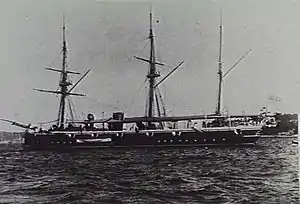 ![]() HMS Royalist anchored at Sydney c. 1890. | |