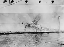 Sussex served in the Mediterranean until 1934, when she was sent to serve with the Royal Australian Navy while HMAS Australia operated with the Mediterranean Fleet.[1] Sussex's exchange tour concluded in 1936,[1] and then she resumed her presence in the Mediterranean until 1939. During this tour of duty, she defended neutral shipping along the eastern Spanish coast in the last days of the Spanish civil war, supported by the destroyers HMS Intrepid and HMS Impulsive. She obtained the release of at least four British cargo ships arrested by Spanish nationalist forces in open seas, but the cruiser was unable to prevent the capture of the London-registered freighter Stangate by the nationalist merchant raider Mar Negro off Valencia on 16 March 1939.[2][3][4]