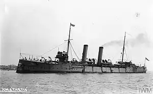 The latter half of her career was spent as a mine-layer. Laden with concrete, she was deliberately sunk as a blockship in attempt to block the canal in the Zeebrugge Raid during the First World War, on 23 April 1918.