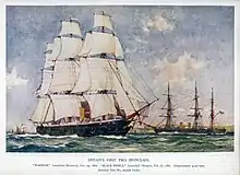 In mid-1863 the Channel Fleet toured British ports for 12 weeks; the ship received 300,000 visitors, including as many as 13,000 a day in port.[46] On 19 September, she rescued the survivors of the Mersey Flat Mary Agnes, which had sunk in a collision with the Isle of Man Steam Packet Company's ship Snaefell at Liverpool, Lancashire.[47]