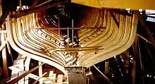 K1 Britannia is a project to create a replica of the original vessel where K1 designates the Britannia's sail number when she was converted to the J class in 1931. In 1993, a syndicate headed by Norwegian Sigurd Coates purchased a stake in the Solombala shipyard in Arkhangelsk in order to create a replica of the Britannia in pinewood and laminated oak.[3] Between 2002 and 2006, the shipyard changed hands several times whilst joinery was nearing completion. In 2006, she was rechristened Царь Пётр (Tsar Pyotr; "Peter the Great") and held back for NOK25,000,000 until 2009, when a Russian court ordered the hull to be launched and delivered by the shipyard to her original owner Sigurd Coates.[4] The story behind this 16-year saga was captured on film by director and producer Ann Coates and released in a documentary called The Dream of Britannia.
