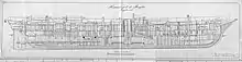 In early 1885 plans to commission De Ruyter for a trip to the Dutch East Indies became known. In mid-July 1885 Captain Jonkheer T.E. de Brauw was appointed to take command of De Ruyter on 1 August.[11] In June she had already run a trial, during which she made 14 knots. On 4 July 1885 she ran another trial.[12] Another trial followed on 10 July, when she made 13.3 kn at 5.49 m average draft. On 27 August a very short trial was held, in which she steamed 13.75 kn at an average draft of 5.88 m,[13] which was not a typical trial run. The plan was to use steam continuously in order to reach the Dutch East Indies in the shortest possible time, the navy hoped for 35 days.[14] De Ruyter was equipped with 316 men, 13 weeks of provisions, 22,000 liters of water, and 366 tons of coal. Draft was 5.62 m fore and 6.76 m aft.[15]