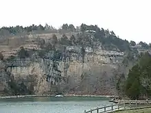 The park also features caves, sinkholes, and bluffs overlooking the lake. It is a prominent example of karst topography, which is geological formation shaped by the dissolution of a layer or layers of soluble bedrock.[5] A 70-acre (28 ha) portion of the park was designated as the Ha Ha Tonka Karst Natural Area in 1981.[6]