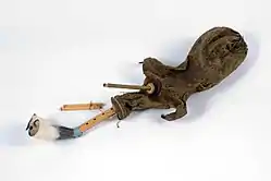 The habbān (or hibbān[1]) is a type of bagpipe used in the coastal regions of the Persian Gulf (especially Kuwait). The term ḥabbān (هبان) is one of several Arabic terms for the bagpipes. The term is drawn from Hanbān (هنبان), the Persian word for "bag.".[2] In Gulf states the term habban refers to the traditional Holi (inhabitants of the eastern coast of the Persian Gulf) bagpipe.[3] The habbān is also called the jirbah (جربة).[4]