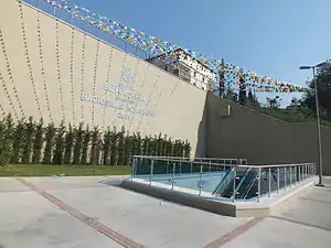 Hacıosman is an underground rapid transit station and northern terminus of the M2 line of the Istanbul Metro.[1] It is located in southern Sarıyer under Tarabya Bayırı Avenue. Hacıosman was opened on 29 April 2011 as a northern extension of the M2 to service neighborhoods in Sarıyer. It has an island platform serviced by two tracks.