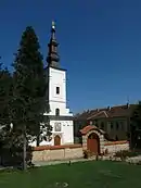 Following his wife's death in 1783, Nenadović took his monastic vows and adopted the name Ruvim[5] at the Bogovađa Monastery.[7] He made a pilgrimage (hadžiluk; hence the prefix "hadži") to the Holy Land, Jerusalem, in 1784[5] and returned in 1785.[13][7] On 25 May 1786, he was appointed the hegumen (monastery head) of the Voljavča Monastery.[7] He remained there until 1788, the beginning of the Austro-Turkish War (1788–91),[13] or by 6 April 1789 at the latest,[7] when the Ottomans burned down the monastery, along with many others in the Belgrade Pashalik.[13] Serbs participated in the war, managing to occupy the pashalik for the Austrians. Hadži-Ruvim fled with the brotherhood, saving some of the monastery's treasures.[7] He recorded that the Ottomans had looted much of the inventory.[14] For a while, he was at the Velika Remeta Monastery at Fruška Gora, in the Habsburg monarchy. When the war cooled down in 1791, he returned to the Belgrade Pashalik, not to Voljavča, but Bogovađa, which had also been burned down.[14][7]