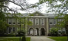 "A," the original school built in 1926, is rectangular and has an inner courtyard framed by three classical arches. Student and community events are held in the courtyard, and students eat there during good weather. Classrooms in this section were recently refurbished with refinished hardwood floors, new lighting, and a new HVAC system. Language, mathematics and other academic subjects are taught here. "A" also contains the auditorium and the smaller of the school's two gyms.