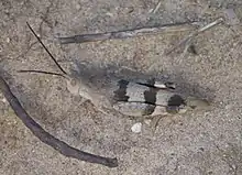 - Hadrotettix trifasciatus (Say, 1828) (three-banded grasshopper)
