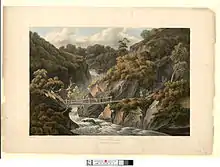 Hafod Uchtryd (English: Uchtryd summer mansion) is a wooded and landscaped estate in the Ystwyth valley in Ceredigion, Wales. Near Devil's Bridge, Cwmystwyth and Pont-rhyd-y-groes, it is off the B4574 road.[1] Hafod Uchtryd land was within the boundaries of the Cistercian Abbey Strata Florida (Welsh: Caron-Uwch-Clawdd). Originally a hunting lodge for Welsh Chieftains, it became home to the landed gentry and the nobility. In the late eighteenth century, a celebrated landscape was created under the ownership of Thomas Johnes.[2]