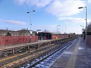 There is step-free access to each platform via inclined ramps. Shelters, digital display screens and timetable poster boards are located on each side; there is also a P.A system provided to supply automated train running announcements.[1]