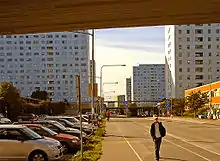 pronunciation) is a residential area and railway yard in Solna Municipality, 5 km north of central Stockholm. It is known for the blue highrise buildings "Blåkulla" (Blue Hill or Blockula) which, against a rather strong and long-lasting opinion, in the beginning of the 1970s replaced a picturesque working-class and craftsman neighbourhood built in the 1890s and portrayed by artist Olle Olsson Hagalund. There are still about half a dozen old houses preserved, a minor area called Gamla Hagalund (Old Hagalund) in the eastern part of the area.